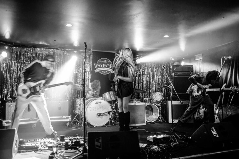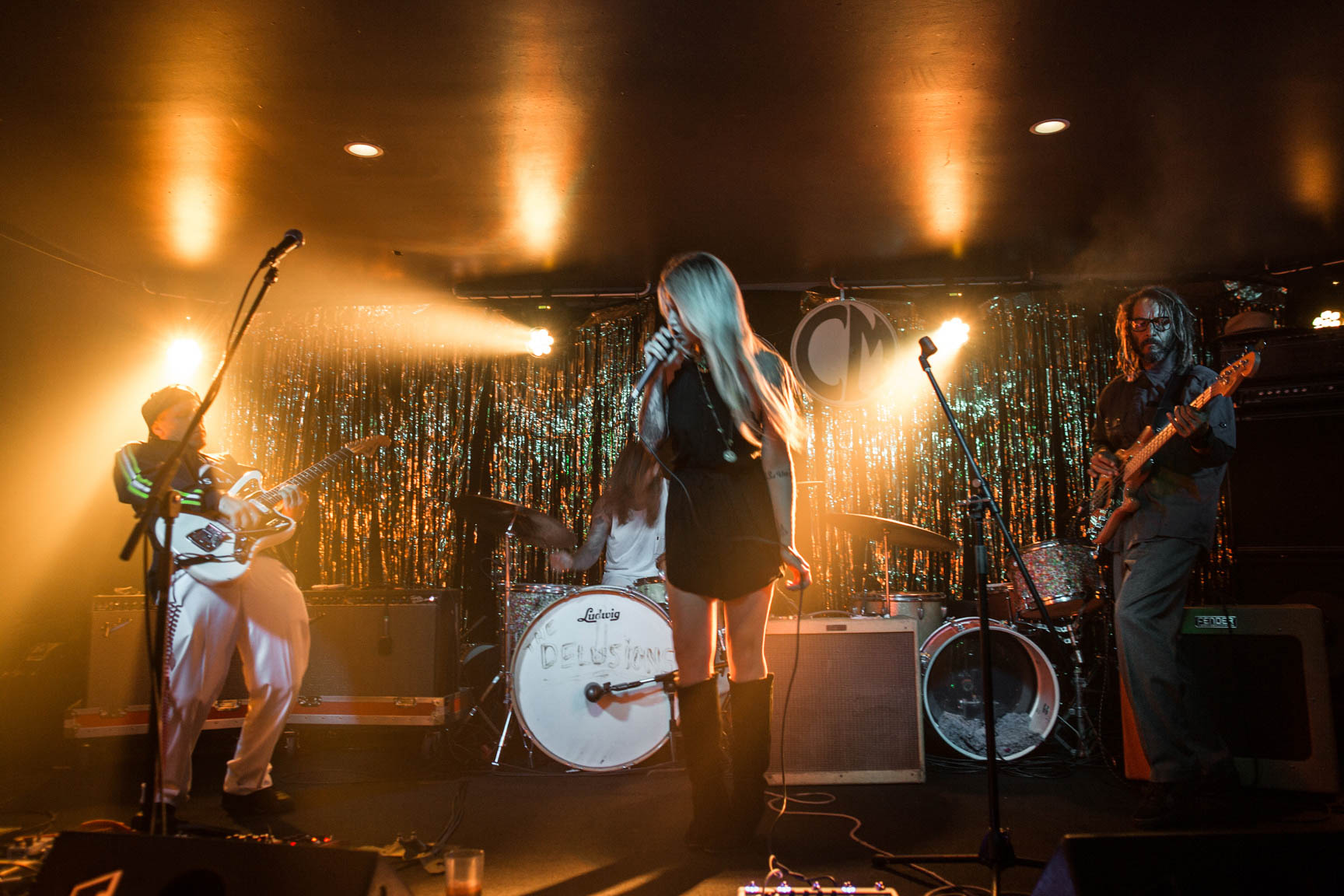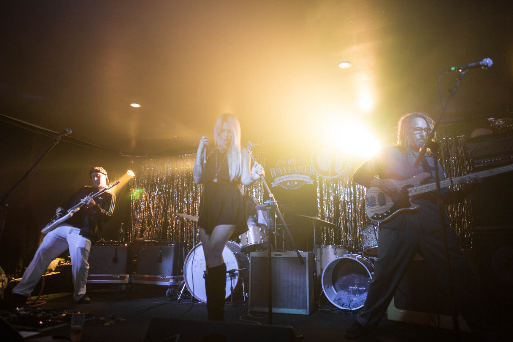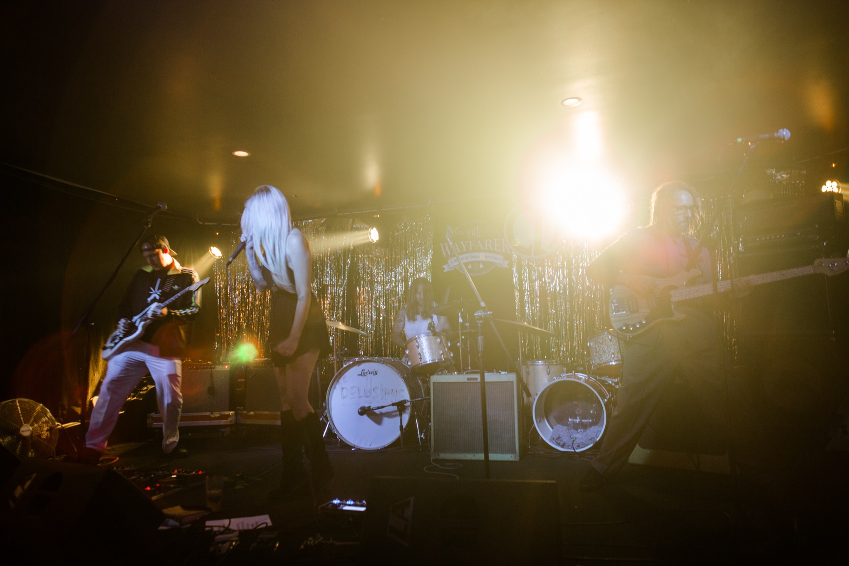 DIY Tee shirts, 70’s prom night was the theme, the stage was covered in gold, everyone was dressed in 70’s prom and the room was filled to the brim with people crowded in to say goodbye to their favorite band and be introduced to new ones. It was the most amazing experience by far at the wayfarer. The sound man Dan took some photos of us while we played.
